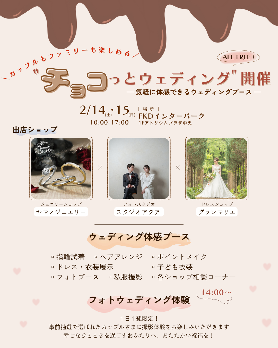 フォト体験・ヘアメイク体験・指輪試着やドレス展示、